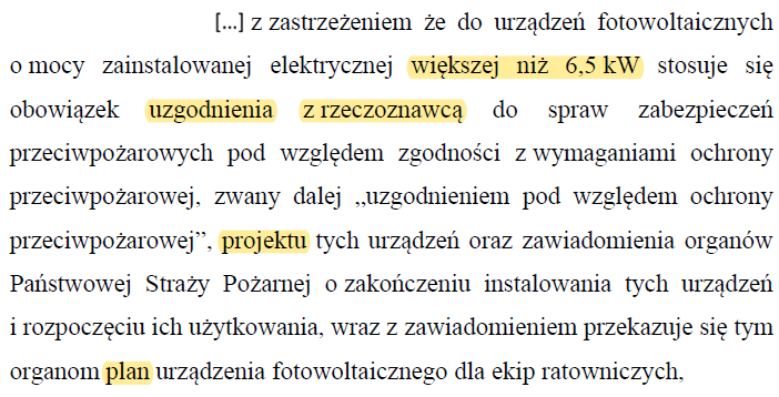Tym samym w poniższych przypadkach obejdzie się bez dodatkowych rozłączników: - falownik w środku budynku mieszkalnego jednorodzinnego (bez względu na kubaturę) Pozostałe sprawy: - jest duży nacisk na kompatybilność złączek DC tzn. wykonywanie połączeń męskie - żeńskie na złączkach tego samego producenta (przeczytaj dlaczego) - ogólnie nacisk na stosowanie komponentów markowych z określonym modelem itp. (również kable DC) => w dużym uproszczeniu pozwala to uniknąć instalatorowi sytuacji wykorzystania komponentów bez wymaganych certyfikatów - brak lokalizowania modułów w strefach granic pożarowych (0,5m na dachach i 1 m na elewacji od granicy z sąsiadem) => to dotyczy np. szeregówek i bliźniaków ale nie dotyczy domków jednorodzinnych. W 90% przypadków jest to spełnione automatycznie z uwagi na samą grubość ogniomuru. - zakaz montowania falownika w strefach z zagrożeniem wybuchem (ponieważ falowniki i reszta komponentów nie posiadają certyfikacji na strefy Ex). Uwaga na kotłownie o mocy powyżej 60 kW => wymaga dodatkowej analizy. - zakaz montowania falownika oraz przewodów (bez obudowy ogniochronnej) w drogach ewakuacyjnych (zwolnienie z zakazu tylko w budynkach mieszkalnych jednorodzinnych) - montaż gaśnicy ABC 4kg - gaśnicy nie montujemy obok falownika / rozdzielnicy AC/DC (zazwyczaj to one są źródłem pożaru i uniemożliwiony by został dostęp do gaśnicy)